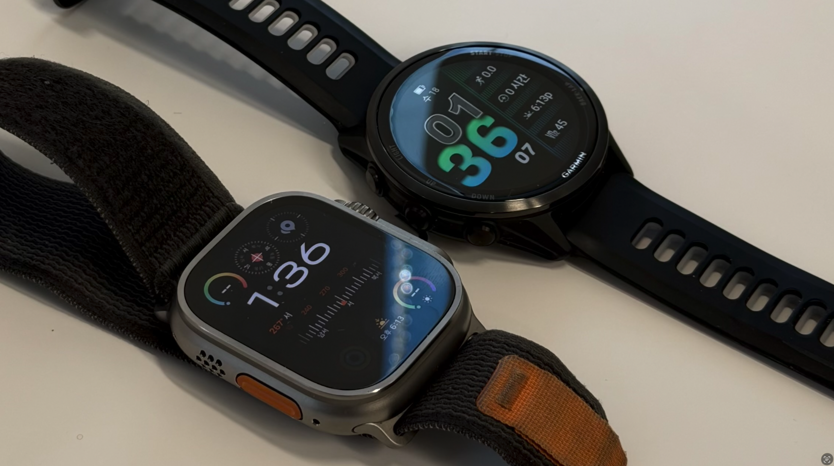 마지막으로 짚어볼 점은 조작 로직입니다. 화창한 날 산책할 때는 애플워치의 매끄러운 터치스크린과 크라운의 부드러운 회전이 세상 부러울 게 없습니다. 하지만 상황이 바뀌어 숨이 턱 끝까지 차오르는 마라톤 대회 35km 지점이라면 어떨까요?
